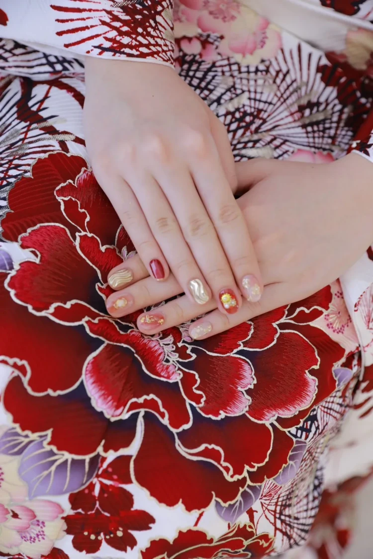 ①振袖の雰囲気に合わせたネイルデザイン