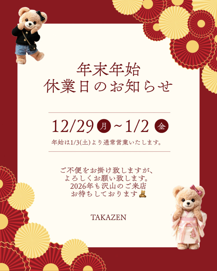 本日は年末年始の休業のお知らせをいたします!