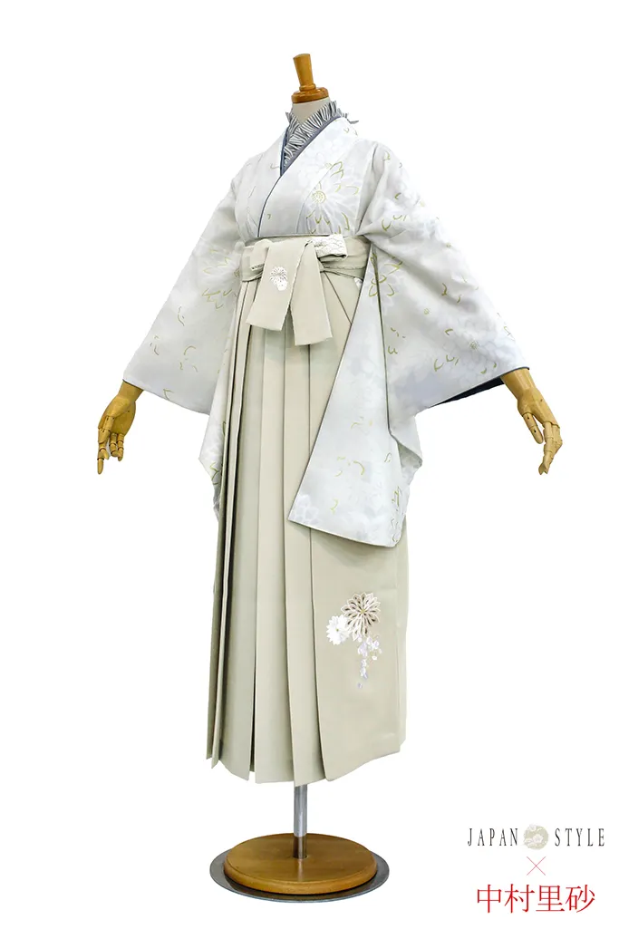 JAPANSTYLE×中村里砂ブランド袴 くすみカラーガーリー 白/グレー/淡い色 菊柄/総柄 人気 トレンド【通販可】R22012